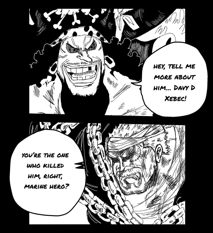 通过蛋头岛艾格赫德出现的范奥卡和戴彭,他们提到了黑胡子的目标是【世界】。这说明了区区【海贼王】还不是黑胡子的最终目标,成为世界之王才是他这一生的追求。为此他抓住克比想换取一个王国的名额,让蜂巢岛成为一个加入世界政府加盟国的国家。但如今克比逃走了,卡普却来了。