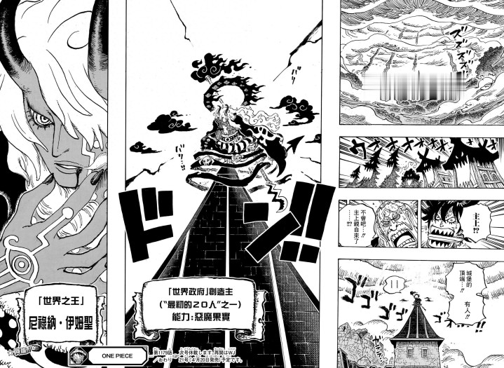 而伊姆所呈现出来的模样是恶魔人兽形态,变身后的他体型十分巨大,起码有几十米高,毕竟这里是巨人族艾尔巴夫。这说明了之前在漫画1085话伊姆变身的巨大形态,也是与恶魔有关的,亦或者是他使用恶魔果实整出来的怪物形态!结合萨博所说的地狱,基本可以明了了。